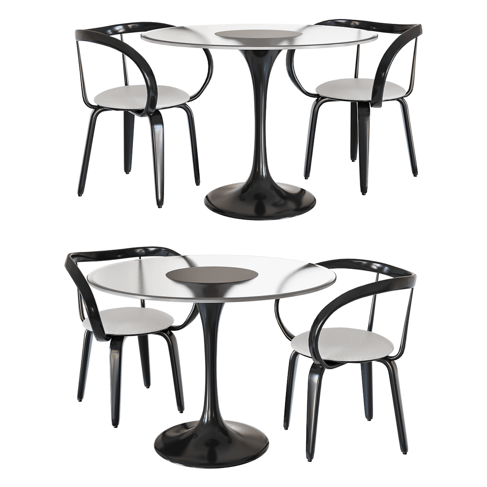 Actual design Apriori L圆形玻璃台面餐桌椅3D模型(OBJ,FBX,MAX)