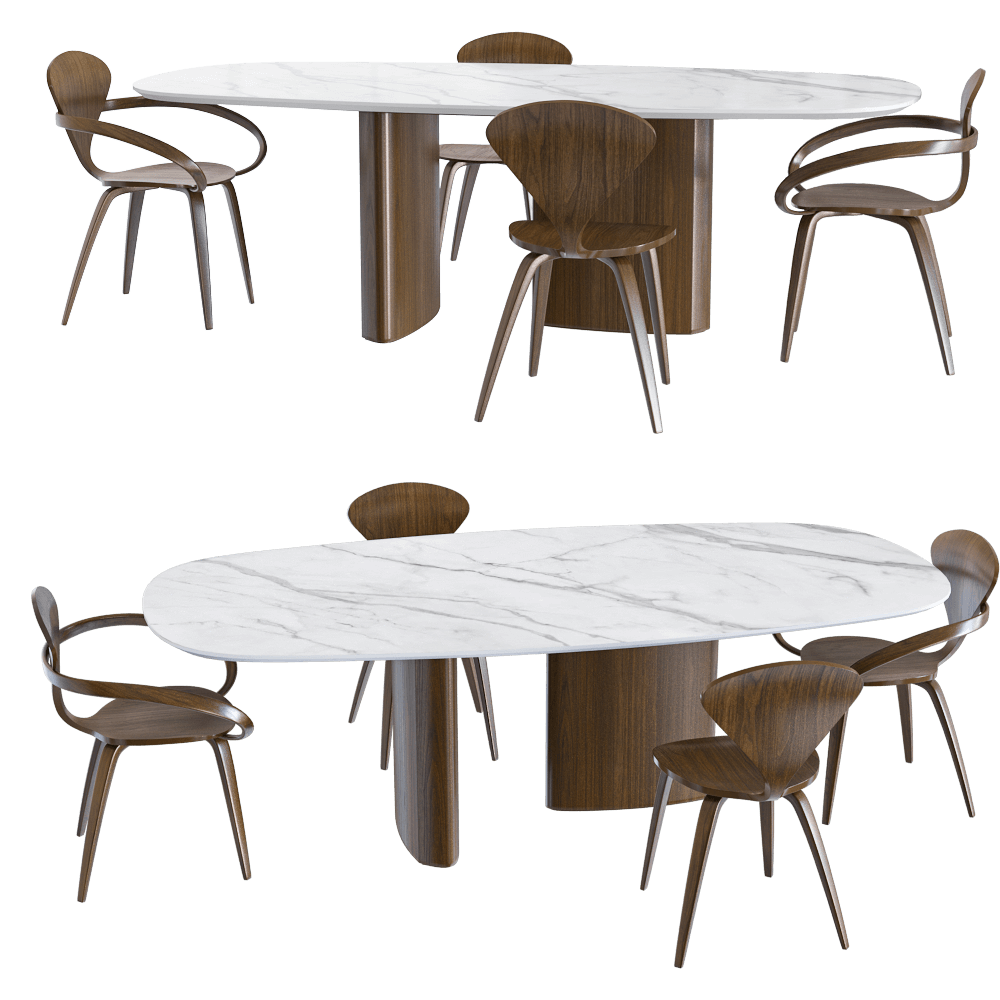Actual design Apriori系列椭圆形大理石台面餐桌椅 桌椅组合3D模型(OBJ,FBX,MAX)