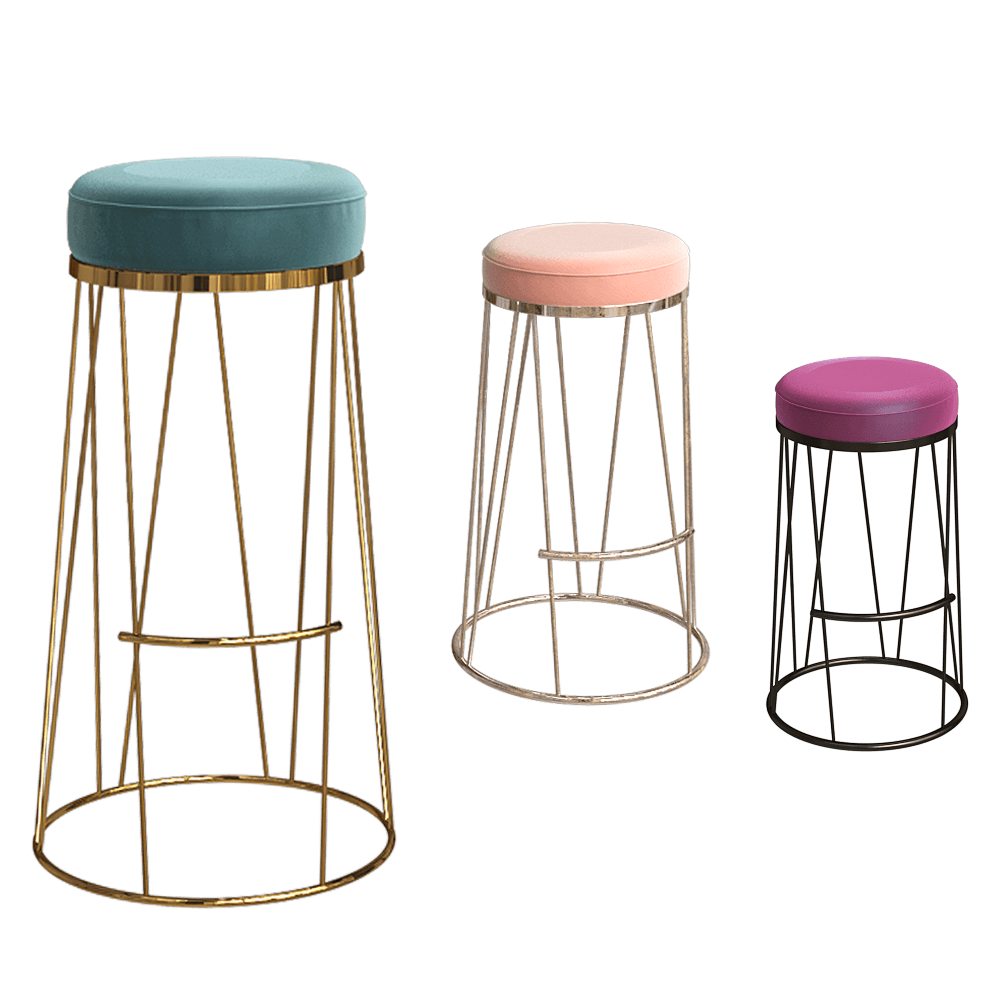 ANNI HAUS Eclat圆形金属底座布艺软垫高脚凳3D模型(OBJ,FBX,MAX)