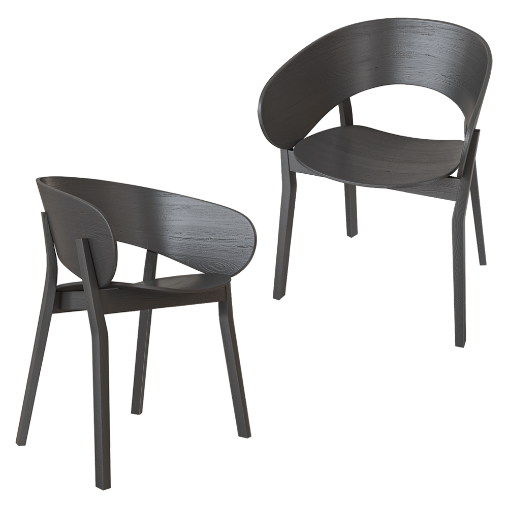 ANNI HAUS Doma黑色木质弧形靠背和坐垫扶手椅3D模型(OBJ,FBX,MAX)