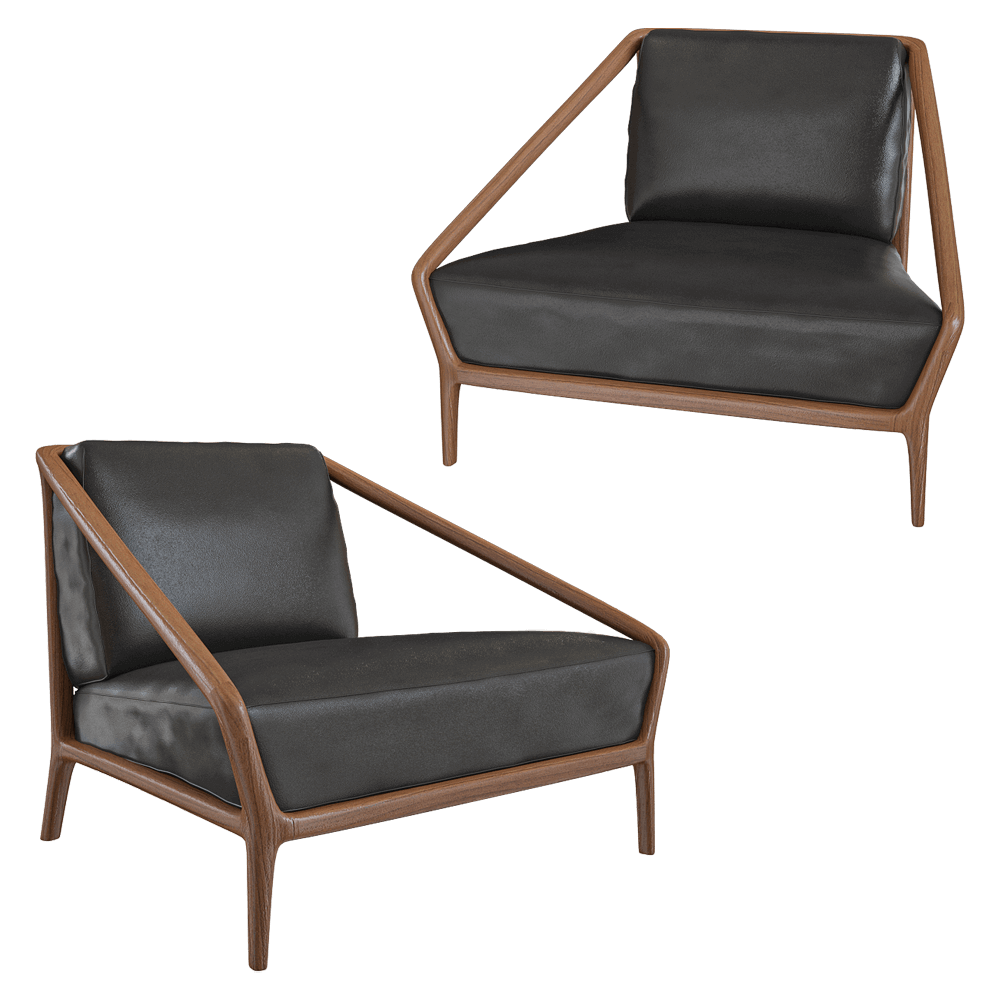 Ceccotti Collezioni Rive Droite棕色木质边框 厚黑色皮革软垫扶手椅3D模型(OBJ,FBX,MAX)