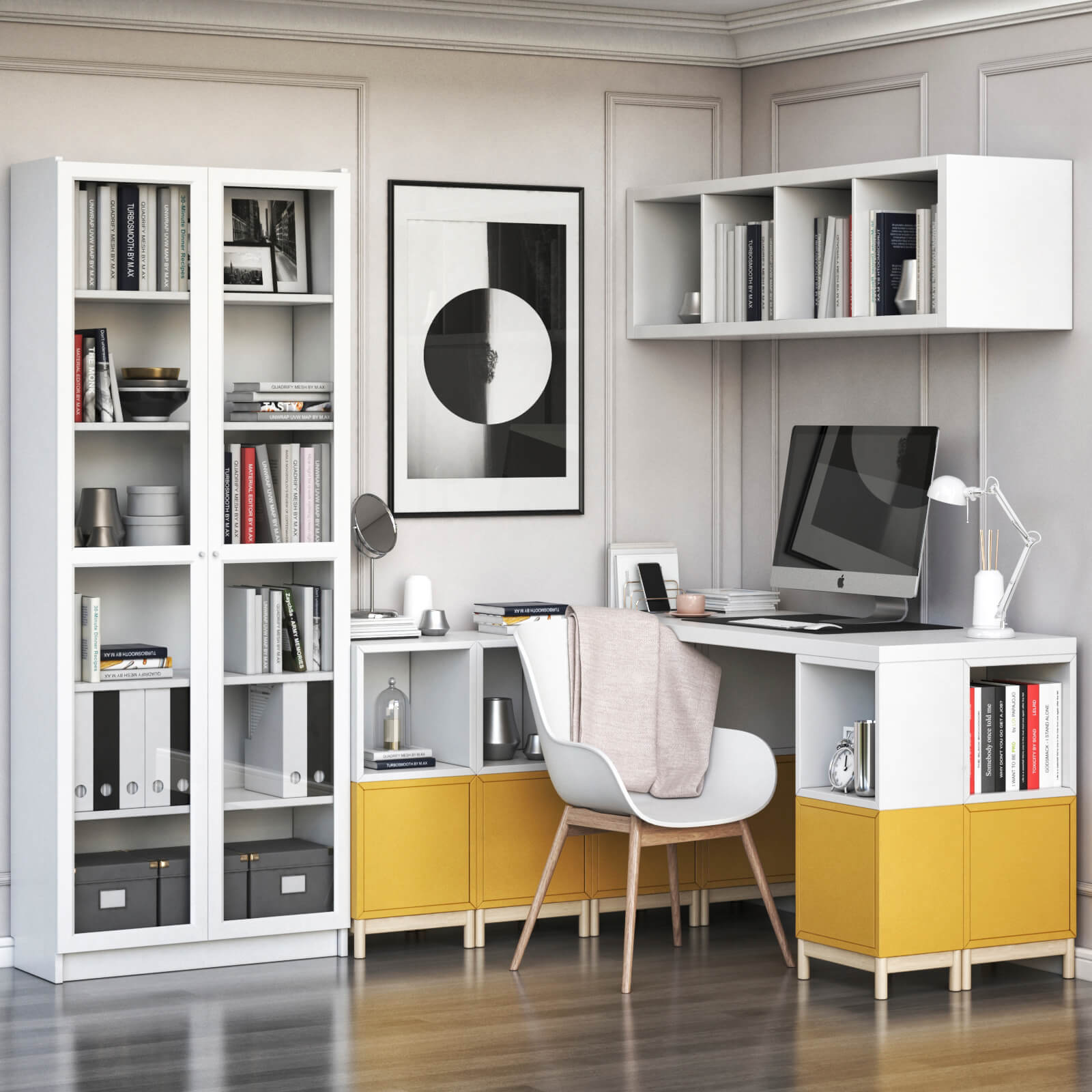 包含储物柜 办公桌椅 电脑 书籍 文具等的宜家家庭转角工作场所 家庭办公场景3D模型(OBJ,MAX)