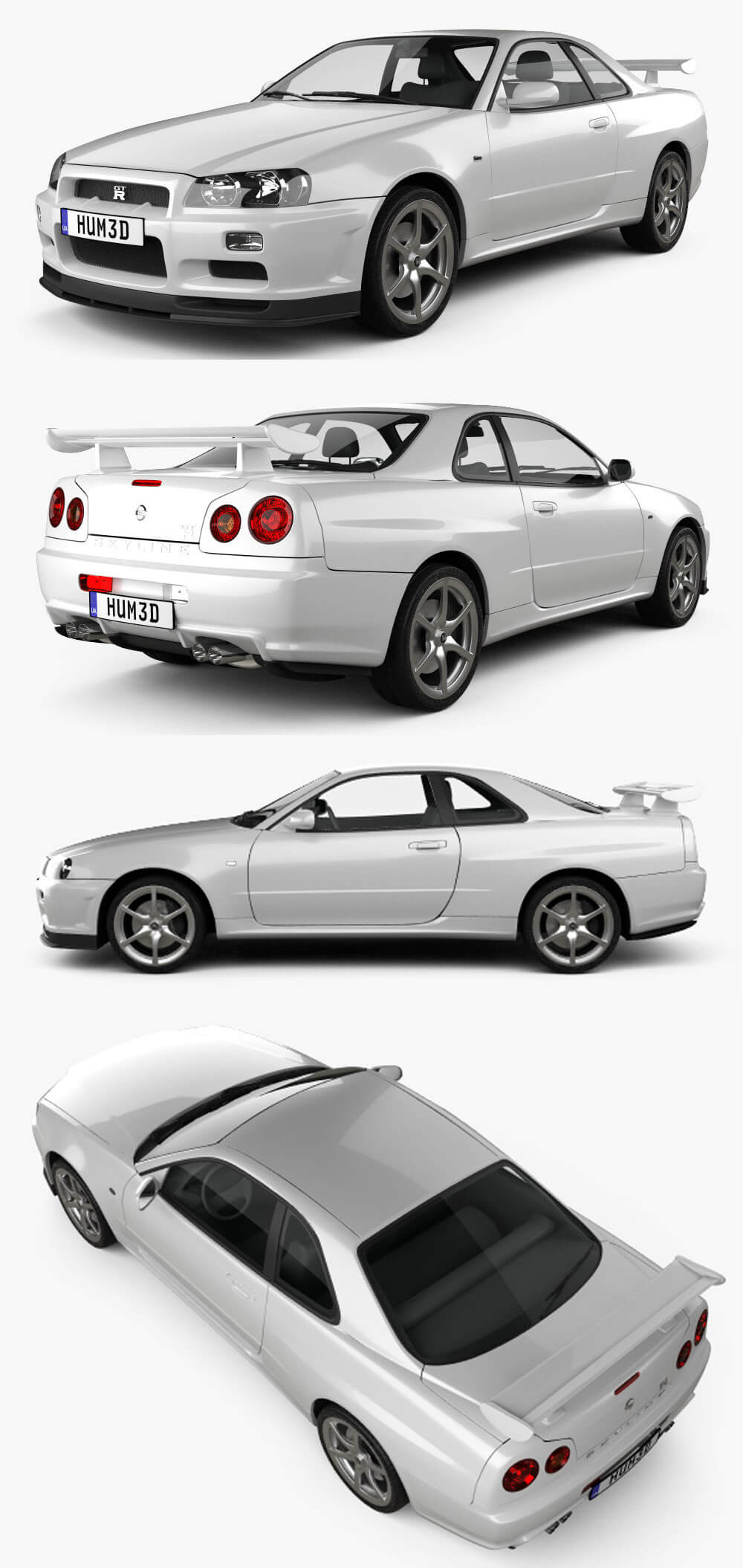 1999日产Nissan Skyline R34 GT-R coupe汽车3D模型(OBJ,FBX,MAX,C4D,LWO)