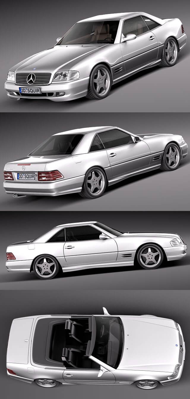 1989-2001奔驰MERCEDES SL500 AMG R129敞篷汽车3D模型(OBJ,FBX,MAX,C4D,LWO)