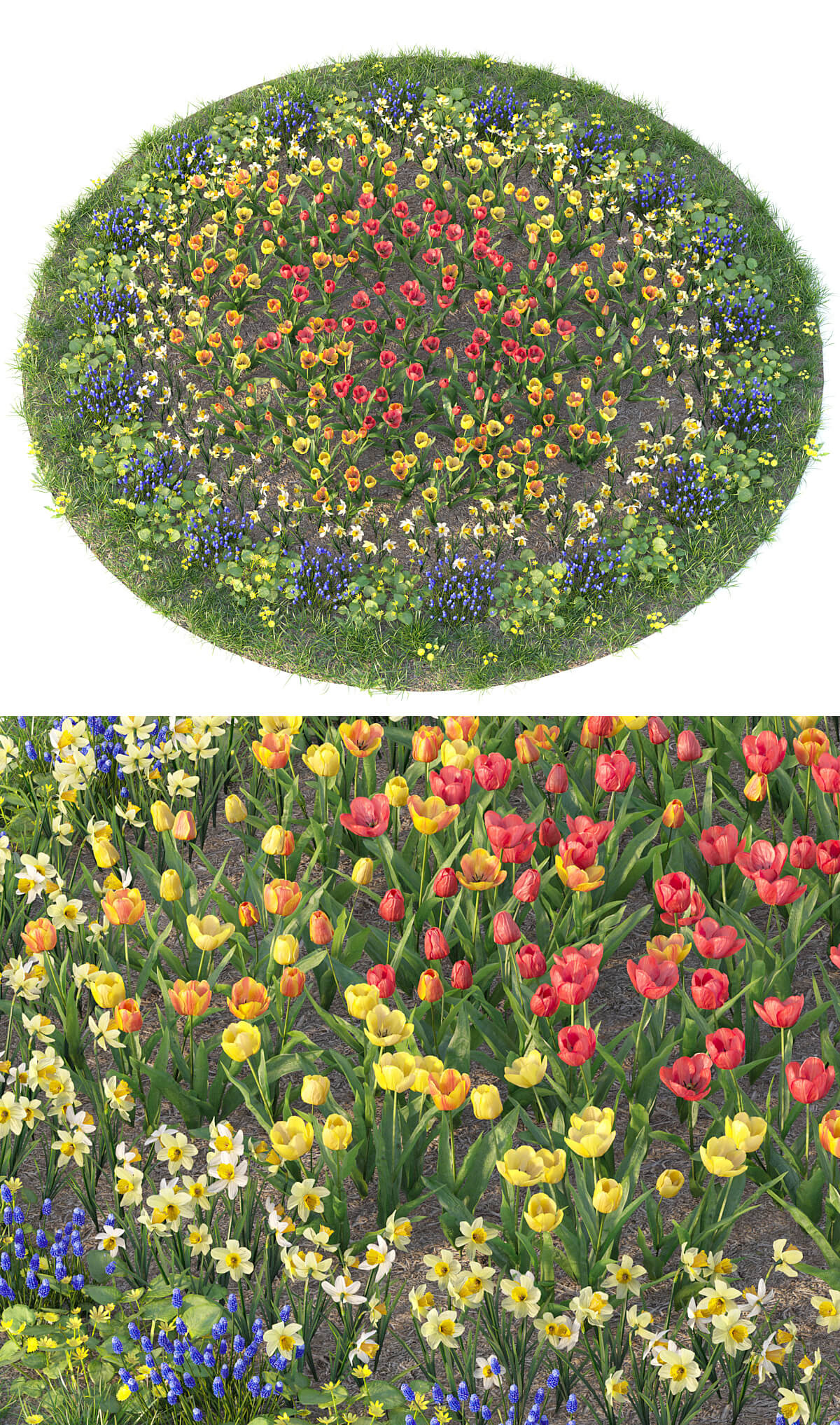5米宽圆形花圃3D模型(OBJ,MAX) C4D / 2023年3月7日 常用3D资源 12 0 0 今天分享的是,5米宽圆形花圃(包含:郁金香,水仙,麝香兰,蒲公英,毛茛)3D模型,各种主流3D软件都能打开(houdini、blender、C4D、Maya和3Ds Max)适合创意找灵感参考,enjoy!