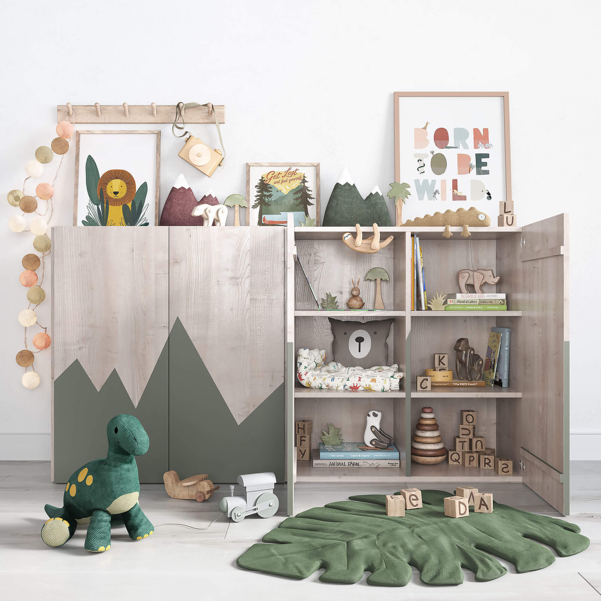 包含储物柜 地毯和玩具等在内的丛林风格儿童房家具和装饰组合3D模型(FBX,MAX)