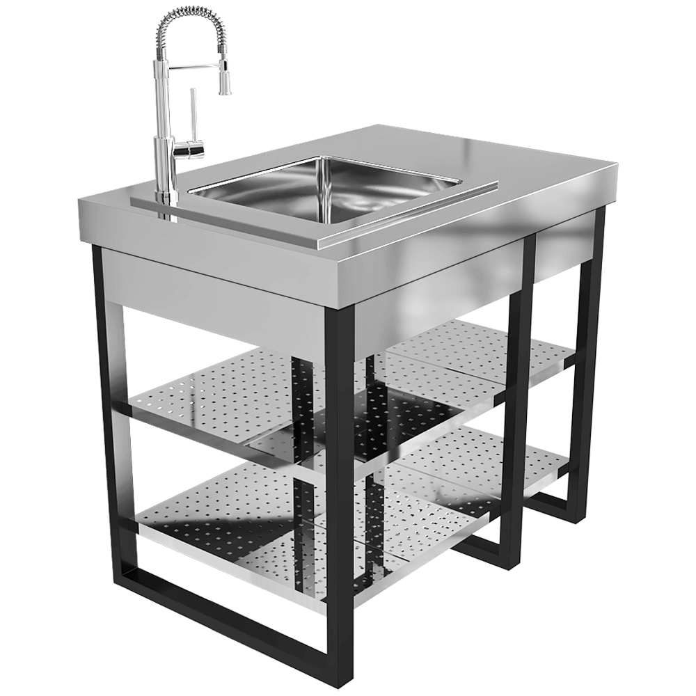 Fogher L号带置物架的金属户外厨房水槽3D模型(OBJ,FBX,MAX)