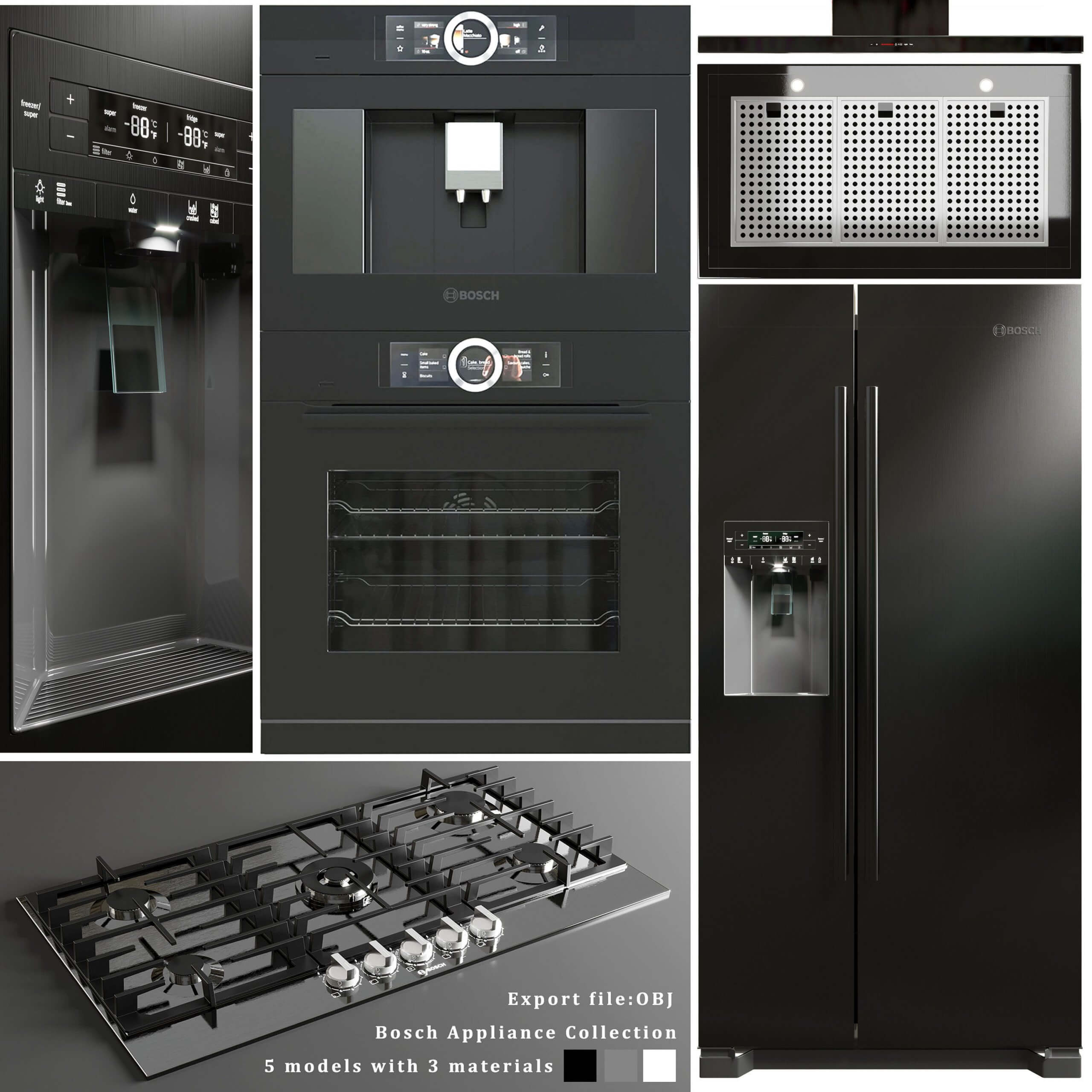 Bosch博世冰箱 燃气灶 抽油烟机 咖啡机和烤箱 厨房电器3D模型(OBJ,MAX)