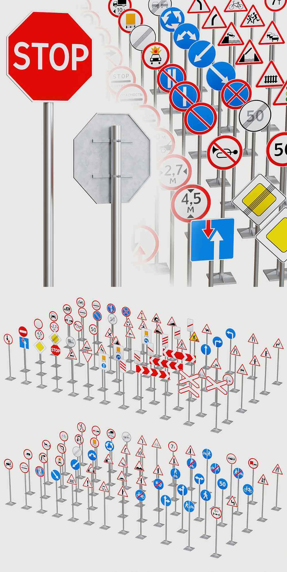交通指示牌 路标合集3D模型(OBJ,MAX) C4D / 2023年11月8日 常用3D资源 0 0 0 今天分享的是,交通指示牌 路标合集3D模型,各种主流3D软件都能打开(houdini、blender、C4D、Maya和3Ds Max)适合创意找灵感参考,enjoy!