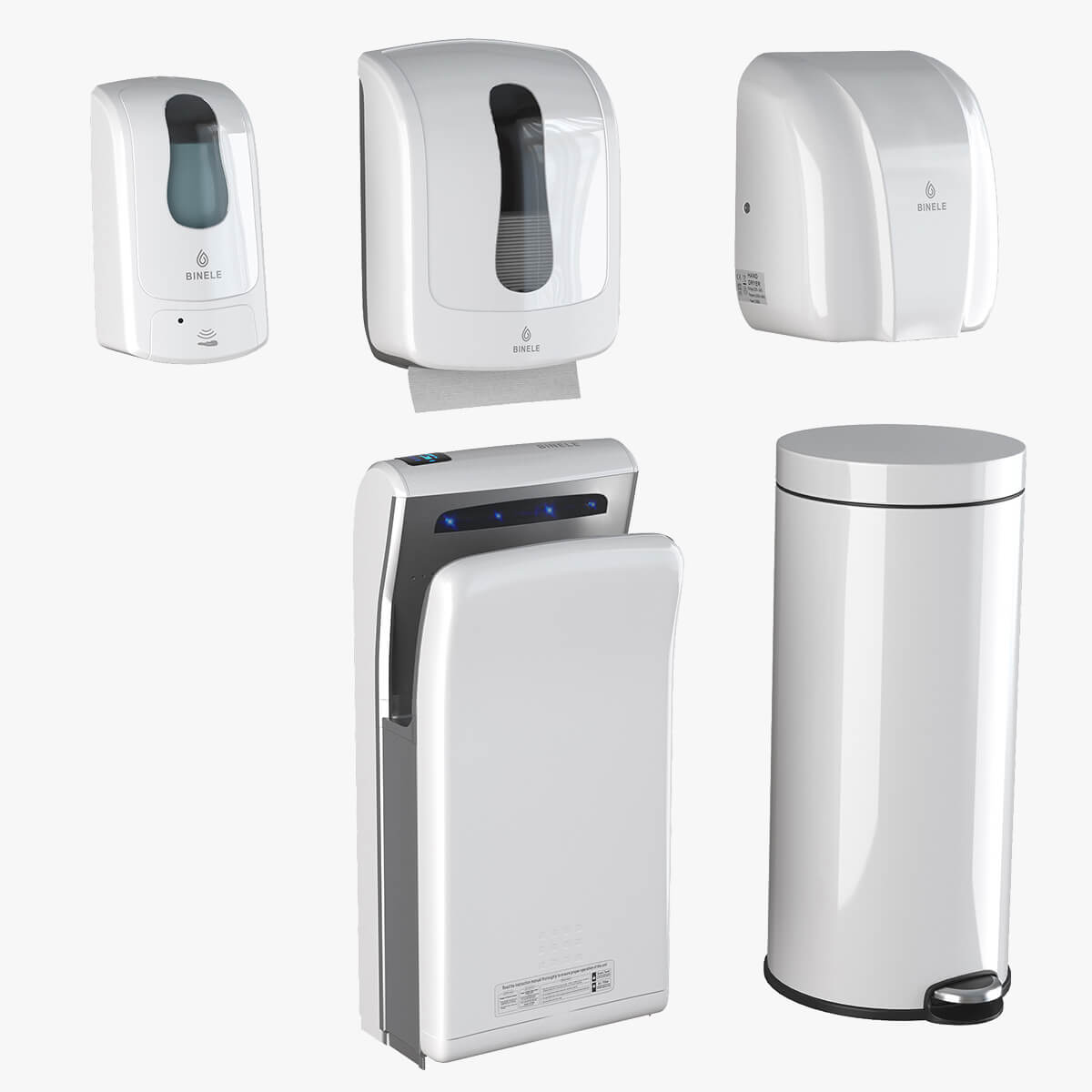 Binele洗手液分配器 纸巾盒 干手机和垃圾桶等洗手间用品组合3D模型(OBJ,FBX,MAX)