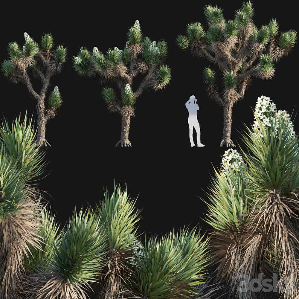 开花的沙漠Yucca Brevifolia Joshua tree约书亚树3D模型(OBJ,FBX,MAX)
