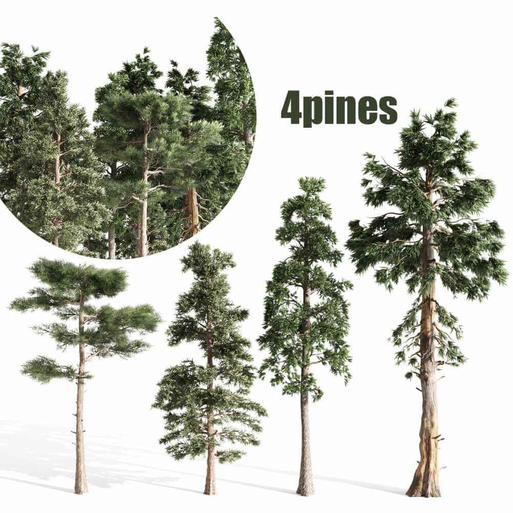4棵不同大小形态的松树3D模型(OBJ,MAX) C4D / 2024年2月21日 常用3D资源 0 0 0 今天分享的是,4棵不同大小形态的松树3D模型,各种主流3D软件都能打开(houdini、blender、C4D、Maya和3Ds Max)适合创意找灵感参考,enjoy!
