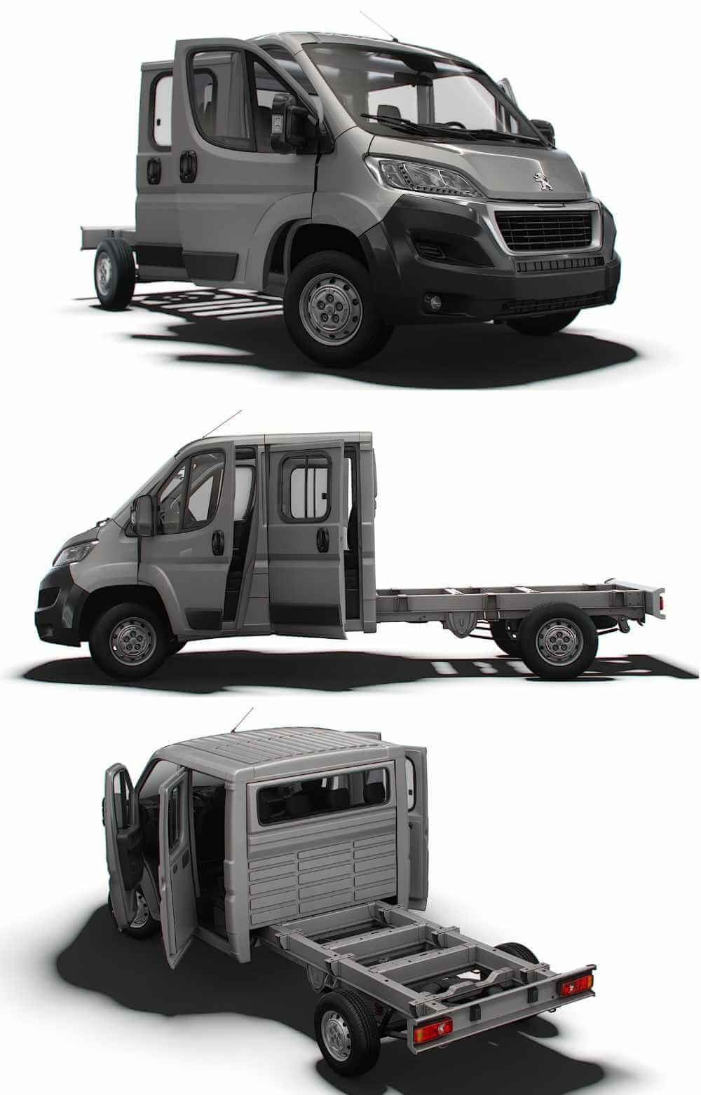 带内饰的2023款标致Peugeot Boxer CrCab 3800WB卡车3D模型(OBJ,FBX,MAX,LWO,C4D)