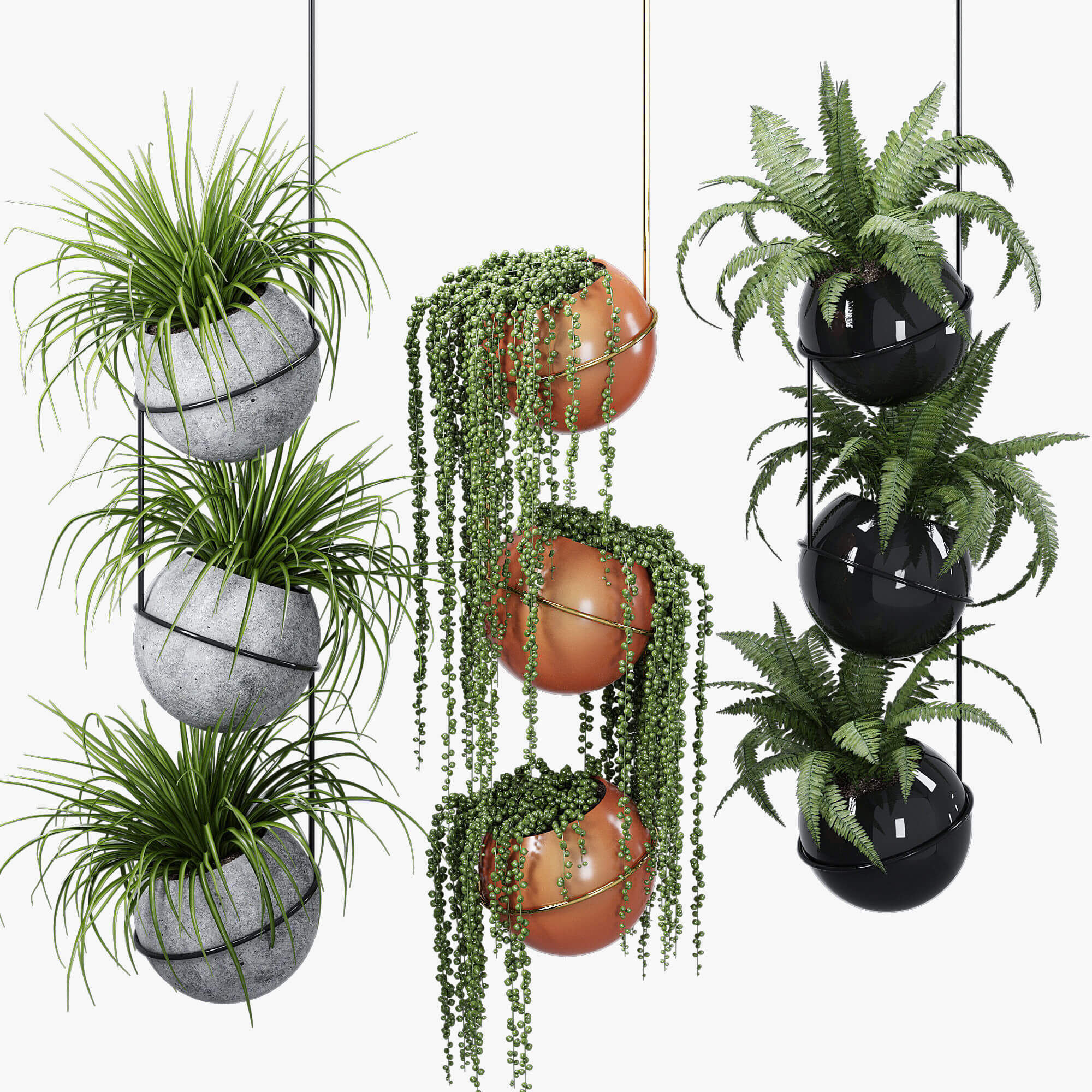 Bloss Tresessanta花盆中的龙须草 蕨类植物吊篮3D模型(OBJ,MAX)