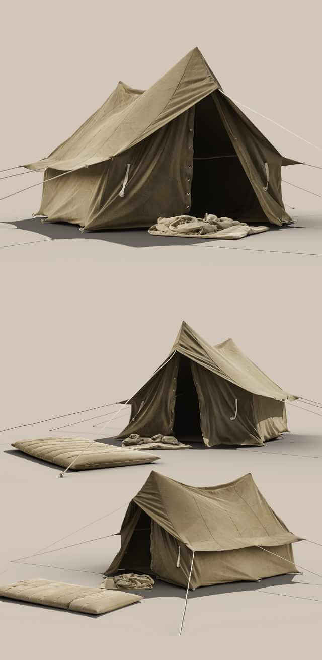旧帐篷3D模型(FBX,MAX) C4D / 2024年9月9日 常用3D资源 0 0 0 今天分享的是,旧帐篷3D模型,各种主流3D软件都能打开(houdini、blender、C4D、Maya和3Ds Max)适合创意找灵感参考,enjoy!