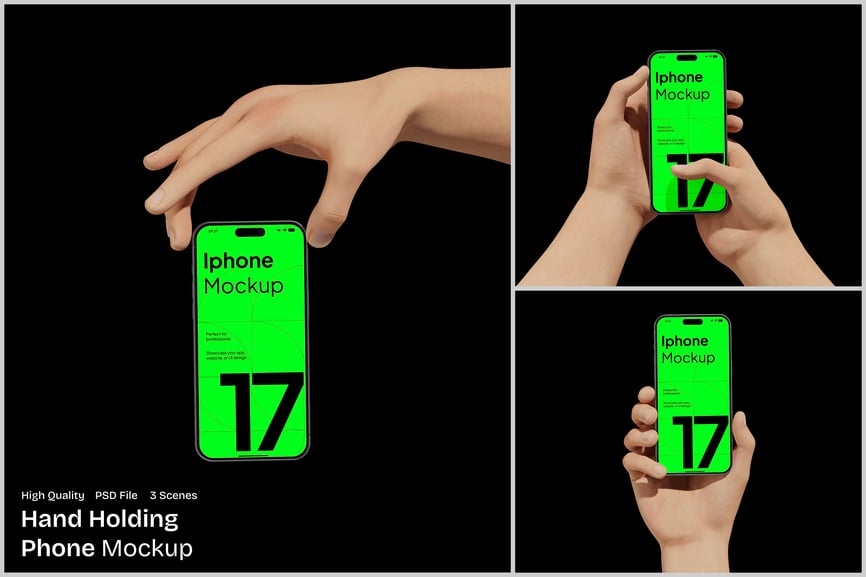 使用这款**手持手机模型**,以逼真的人机交互方式展示您的 UI 设计。这款模型非常适合**应用预览、UI/UX 案例研究、产品发布或移动界面演示**,为您的演示增添生活情境。