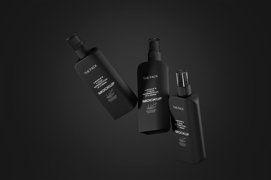 这套模型包含多个喷雾瓶,以简洁的悬浮式布局排列,方便您清晰地展示化妆品品牌和标签设计。它提供逼真的瓶身视图,帮助您更好地理解产品标识的应用效果