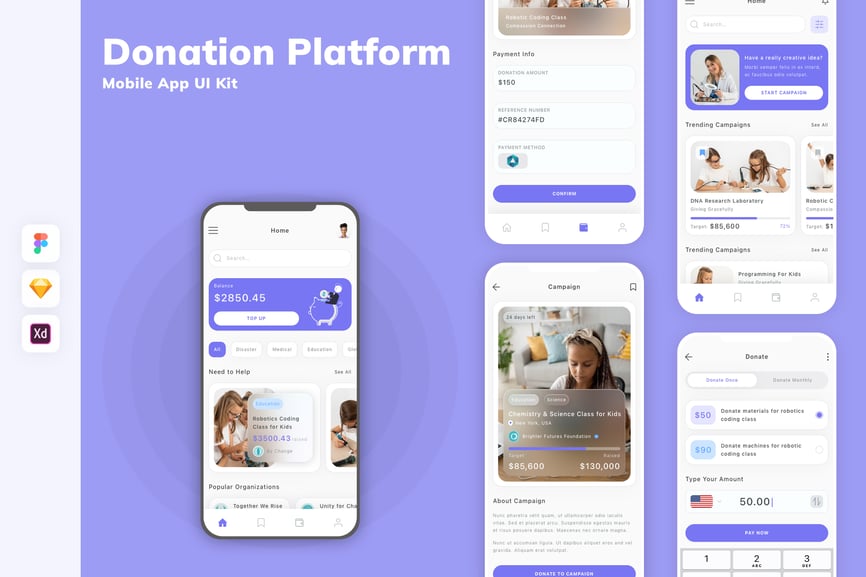 我们的 UI 工具包经过精心设计,可完美适配 Figma、Sketch 和 Adob​​e XD。所有文件都组织有序,命名规范,因此您可以轻松修改任何设计。