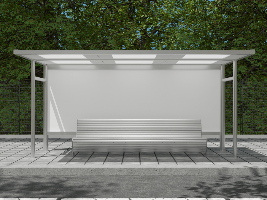 * **对象:** 街道环境中的全屏公交车站广告牌。