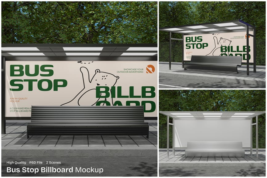 使用这款**公交站牌模型**展示户外广告理念,适用于**户外广告宣传活动、街头广告、品牌展示和营销视觉素材**。该模型以清晰的广告牌框架还原了真实的城市环境。