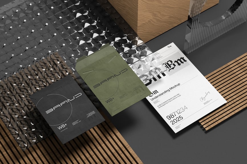 一套完整的样机素材,包含信封和信纸,非常适合展示视觉识别和企业品牌设计。该设计清晰地突出了布局细节,满足专业演示的需求。