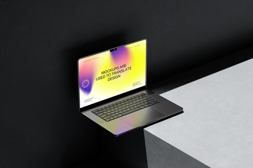 此模型展示了一台放置在极简平面上的笔记本电脑,屏幕清晰可见,非常适合用于展示用户界面设计、网页布局或数字品牌形象。它提供了一种简洁而结构化的构图,能够有效地突出设计细节。