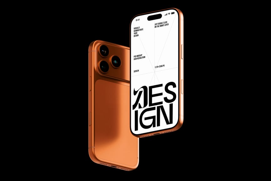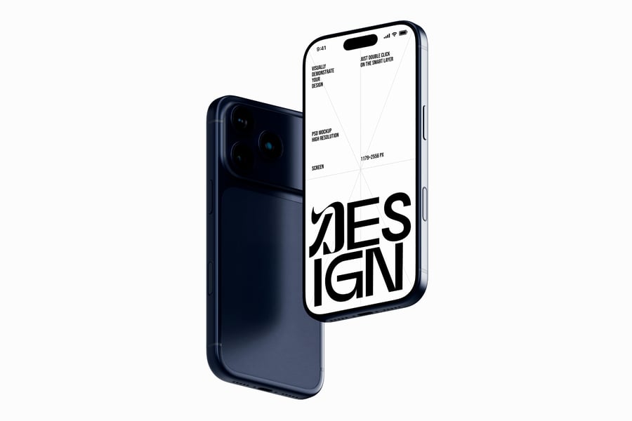 **iPhone 16 Pro 模型** – 分层、可编辑的 .psd 文件,可通过编辑智能对象和颜色图层来展示您的自定义设计。