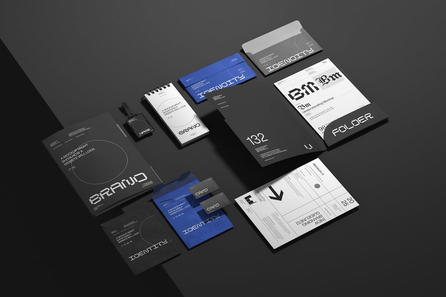 这套样机包含完整的办公用品,包括文件夹、信封、卡片和文件,有助于以结构化的布局展示品牌识别概念。它提供了一个简洁的展示环境,可用于展示设计在多种印刷元素上的应用