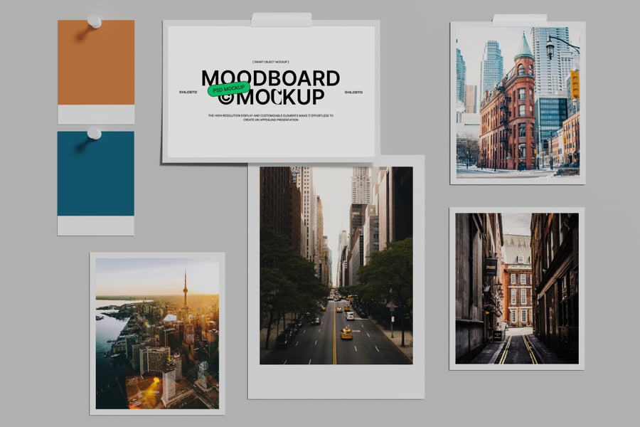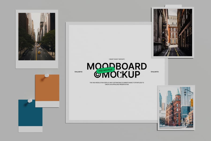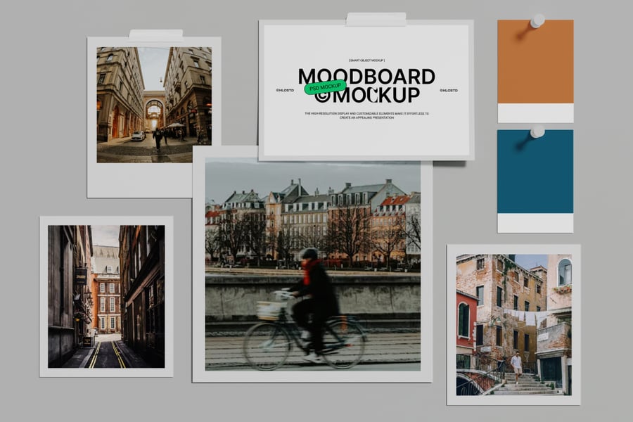其他设计用途:情绪板演示模型、创意概念板、视觉识别布局、品牌情绪设计、艺术指导板、摄影灵感模板、美学情绪展示。
