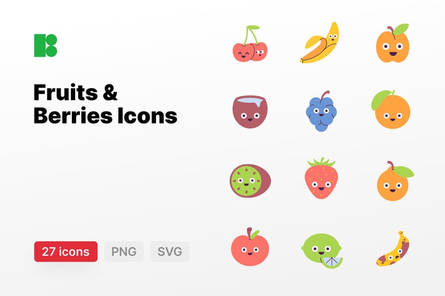 水果和浆果主题图标,矢量 SVG 格式和透明 PNG 格式