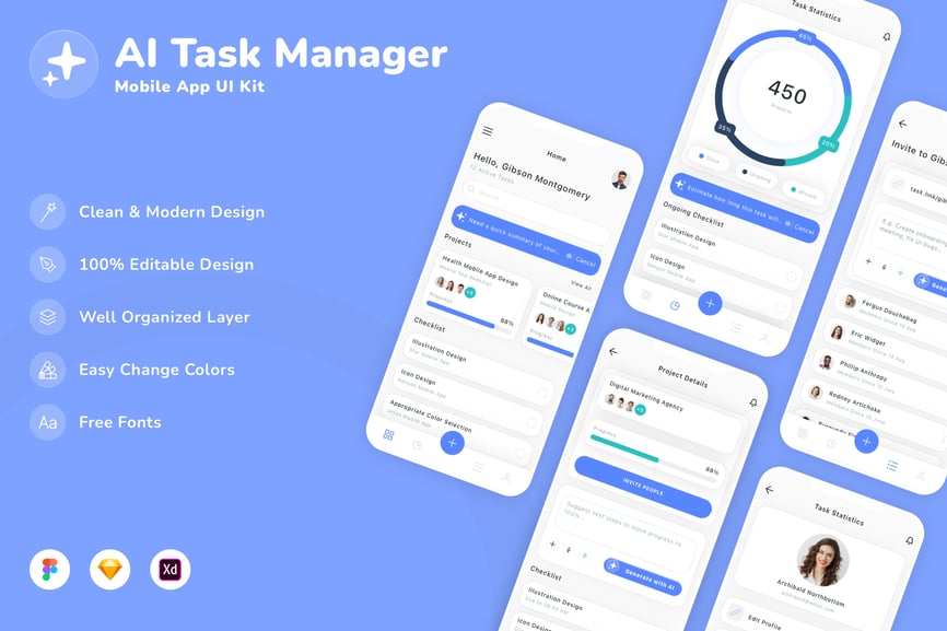AI 任务管理器移动应用 UI 套件