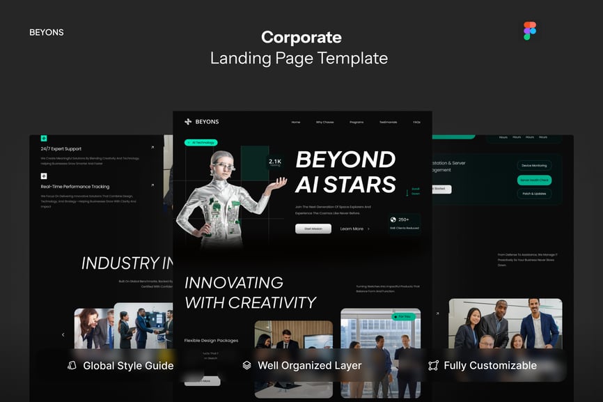 专为公司、初创公司和企业打造的企业登陆页面设计。该模板拥有未来感十足的 UI/UX 和转化率优化的布局,非常适合展示服务、建立品牌信任和吸引潜在客户。它旨在突出您的公司简介、业务解决方案和客户成功案例,帮助您树立可信、面向未来且具有竞争力的品牌形象。
