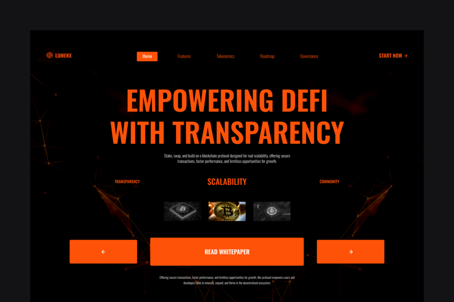 隆重推出 LumenX,这是一款简洁易用的 Figma 落地页模板,专为 Web3 平台设计。它拥有代币经济学布局、治理功能以及可兑换的设计,专为加密货币初创公司和 DeFi 项目量身定制。