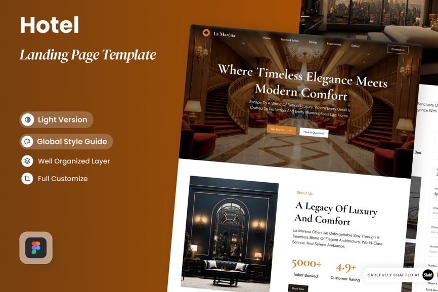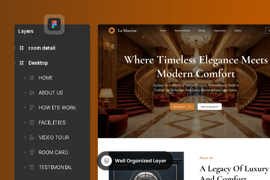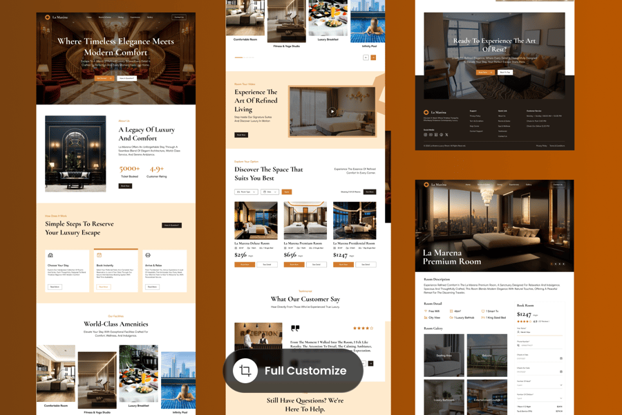 La Marena 是一款专为现代住宿网站量身定制的奢华且精心设计的落地页。它拥有优雅的布局、温暖的色调和沉浸式的视觉元素,为用户带来宁静而高端的浏览体验。La Marena 采用 Figma 精心设计,可完全自定义并响应式布局,非常适合展示海滨别墅、精品酒店或高端城市住宿。无论是突出房间细节、便利设施还是客人评价,这款模板都能轻松将美观与功能性完美融合,是致力于打造令人印象深刻的酒店品牌的理想之选。