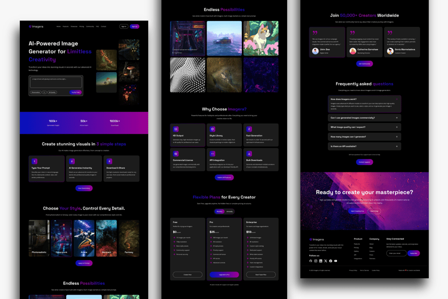 **此模板是一个简洁却专业且现代的网站。**您可以在 Figma 中编辑它。轻松插入内容、更改颜色,所有模板均已包含,可随时与您的受众分享。完全兼容、可编辑且像素完美。此外,它们组织有序,命名和分组都经过精心设计。