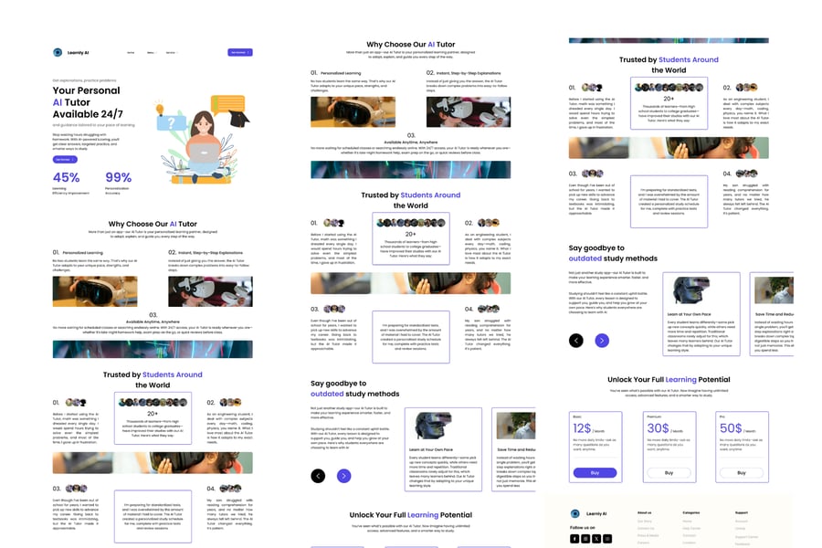 隆重推出 **Learnly AI** 网站模板,这是一款简洁、现代且响应式的设计,助您打造引人注目的专业网站。无论是企业、创意作品集、博客还是个人项目,这款模板都能完美胜任,兼具灵活性和时尚感。