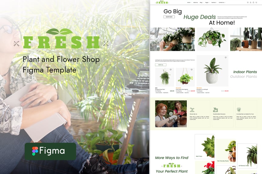 **Fresh** 是一款优雅易用的 Figma 植物购物网站模板。它涵盖所有商业类型,例如植物商店、农场、蛋糕店、鲜花店或服务店等等。它拥有植物风格的元素和直观的功能,确保了无缝的用户体验。对于园艺爱好者和植物爱好者来说,它非常理想,能够提升绿化领域的参与度和易用性。