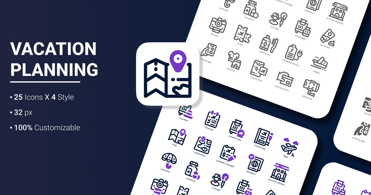 30 个可立即使用的高质量图标,3 种风格,可供您设计使用。