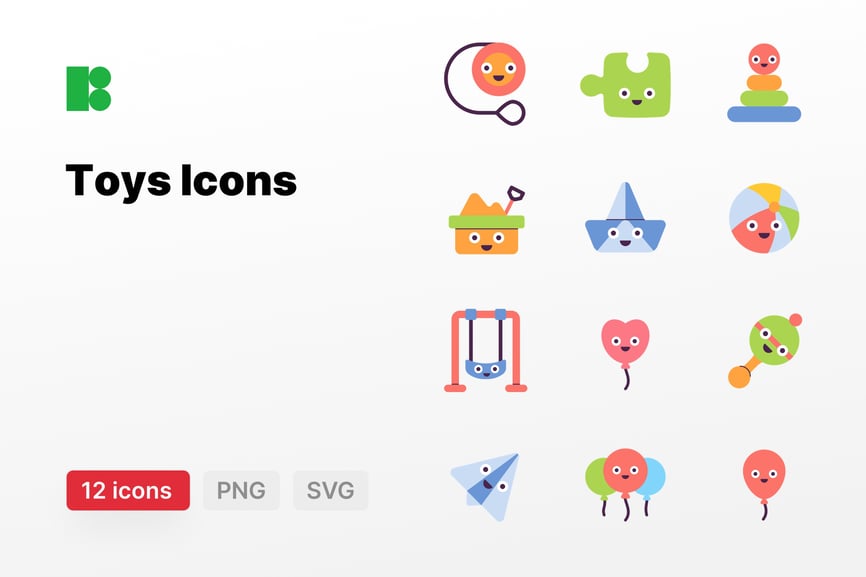 玩具图标合集——矢量 SVG 格式和透明 PNG 格式;高质量设计。