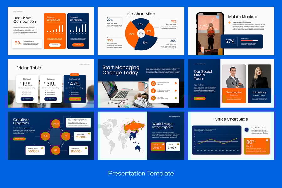 这款变革管理 Google 幻灯片模板旨在帮助组织以清晰有序的方式指导团队完成转型。它包含一系列即用型幻灯片,涵盖变革策略、实施计划、利益相关者沟通、风险管理和绩效跟踪等方面。凭借专业的视觉效果和灵活的布局,您可以有效地展示变革举措,从而建立理解并获得支持。