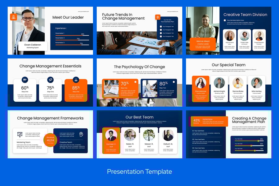 此模板非常适合需要有效沟通变革的高管、顾问、人力资源负责人和经理。可用于组织转型项目、领导力战略研讨会、员工敬业度计划、培训项目和利益相关者更新,以确保新流程和业务目标的顺利实施。