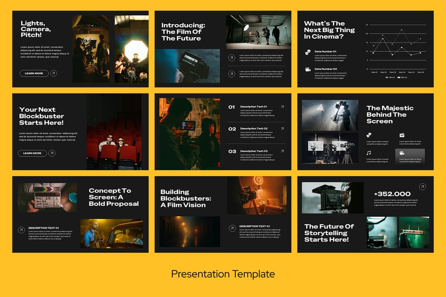 此模板非常适合需要推介精彩电影故事的电影导演、编剧、制片人和创意团队。可用于惊悚片演示、心理剧推介、恐怖片演示文稿、悬疑剧情分析、制作计划和投资人提案,打造引人入胜、令人难忘的印象。