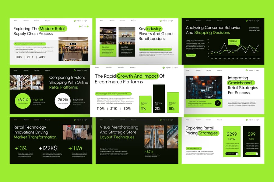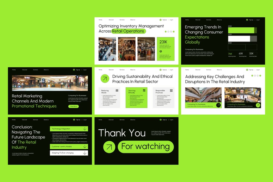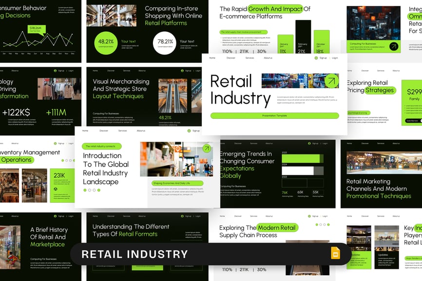 使用零售行业 Google Slides 演示模板提升您的业务故事讲述能力,让数据驱动的决策脱颖而出。