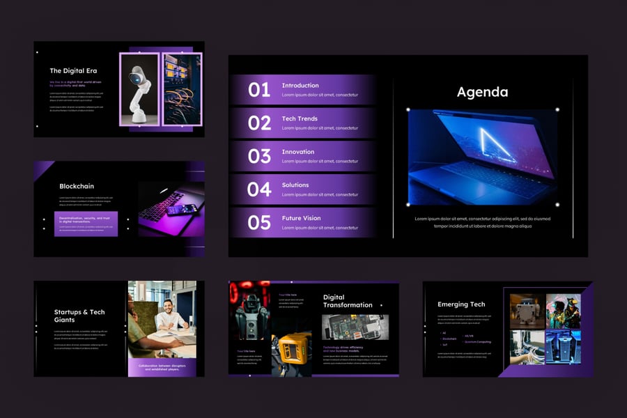 技术为当今组织打造了一套简洁、现代、多功能的工具包,涵盖战略和执行层面。它融合了人工智能突破、可扩展的云基础架构、强大的网络安全以及以人为本的变革,助力企业将愿景转化为实际影响。该工具包围绕人工智能、云计算、网络安全、数字化转型、未来工作和医疗科技等核心主题构建,在清晰度和创意性之间取得平衡,满足重视简约现代视觉效果的团队的需求。
