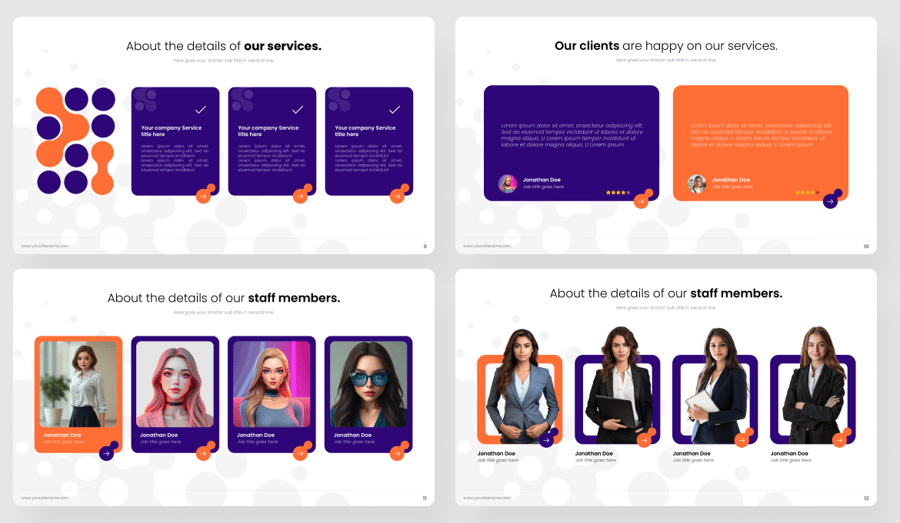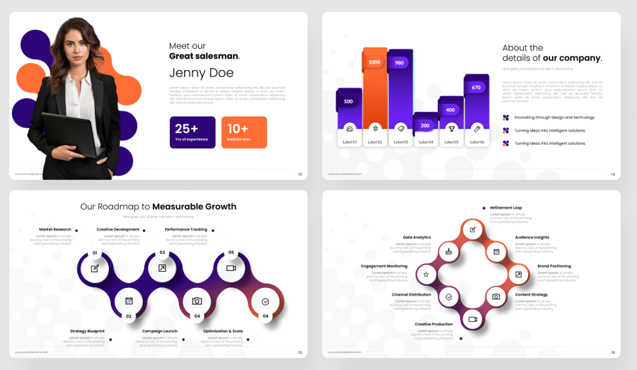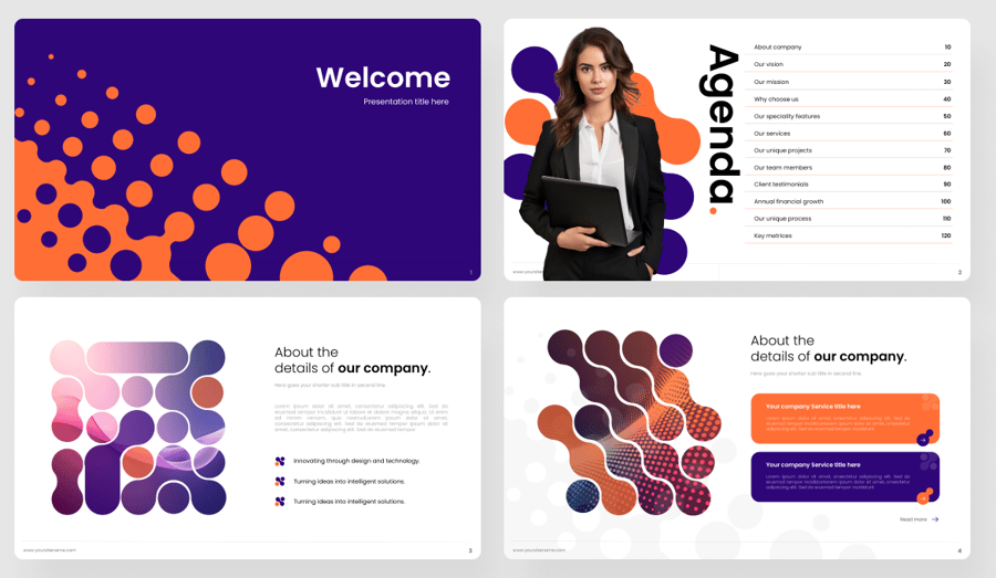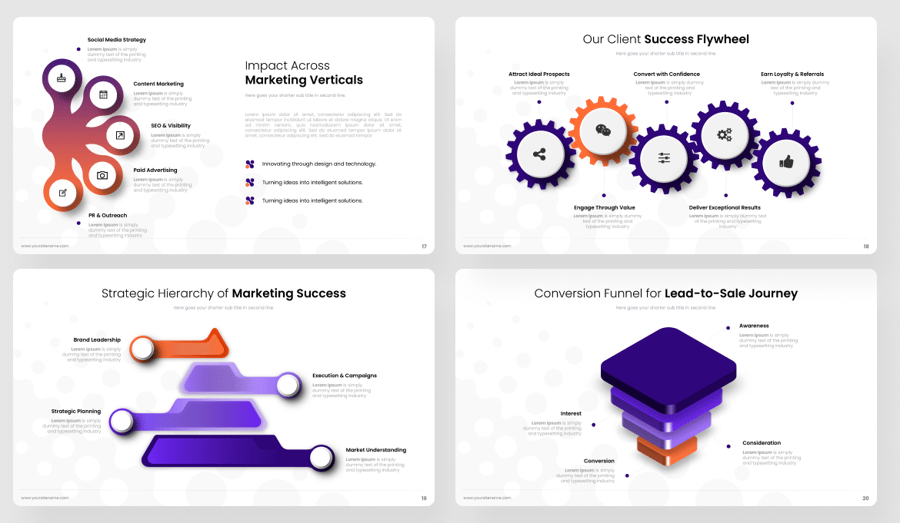 使用这款现代化的全可定制模板,轻松打造精美演示文稿。该模板采用拖放式界面,方便您轻松放置图片。更棒的是,它使用免费字体(提供下载链接),为您节省时间和金钱。模板包含 20 张专业设计的幻灯片。