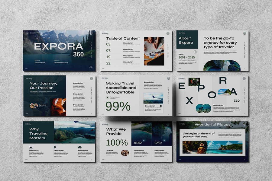 适用范围:投资者应用程序推介演示文稿、商业计划演示、战略会议、产品发布、代理机构提案、商业推介演示文稿、旅行社、旅游套餐、目的地营销、假日促销、旅游博客和客户演示。