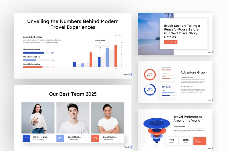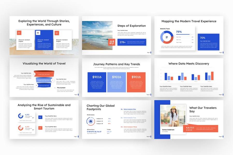 它拥有可编辑的图表、地图、图形和丰富的视觉布局,非常适合旅行社、营销团队和旅游组织使用。