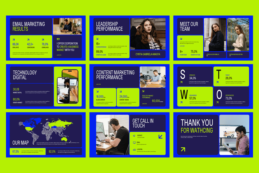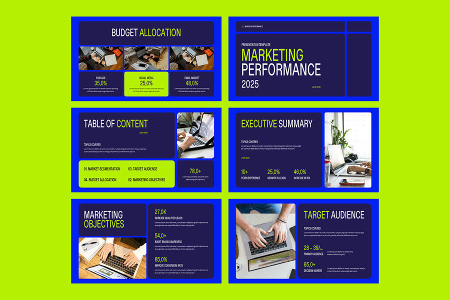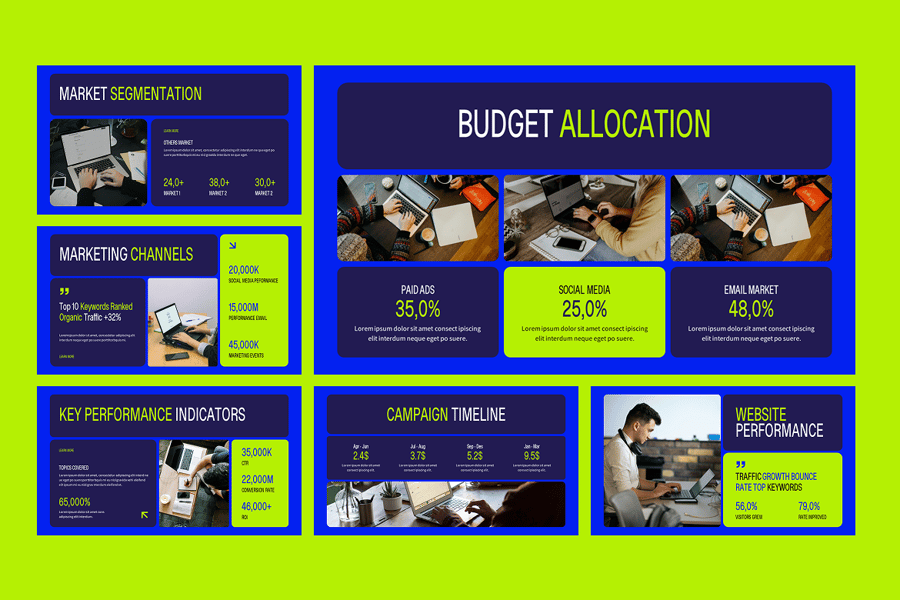 它拥有 40 多个现代幻灯片布局,包含专业的分析仪表板、营销 KPI、图表、信息图和绩效指标可视化——您需要的一切,以突出 ROI、转化成功率、市场增长和活动分析。