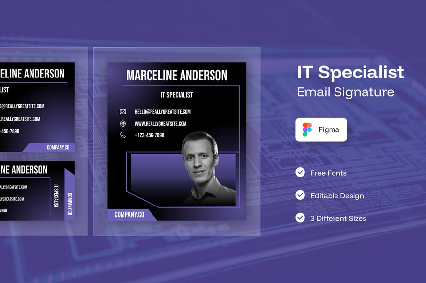 简洁专业的电子邮件签名设计,适用于商务或个人用途。一款设计提供三种不同尺寸,满足您的多种需求。现代、优雅、简洁的设计风格,令您的电子邮件签名更显专业。