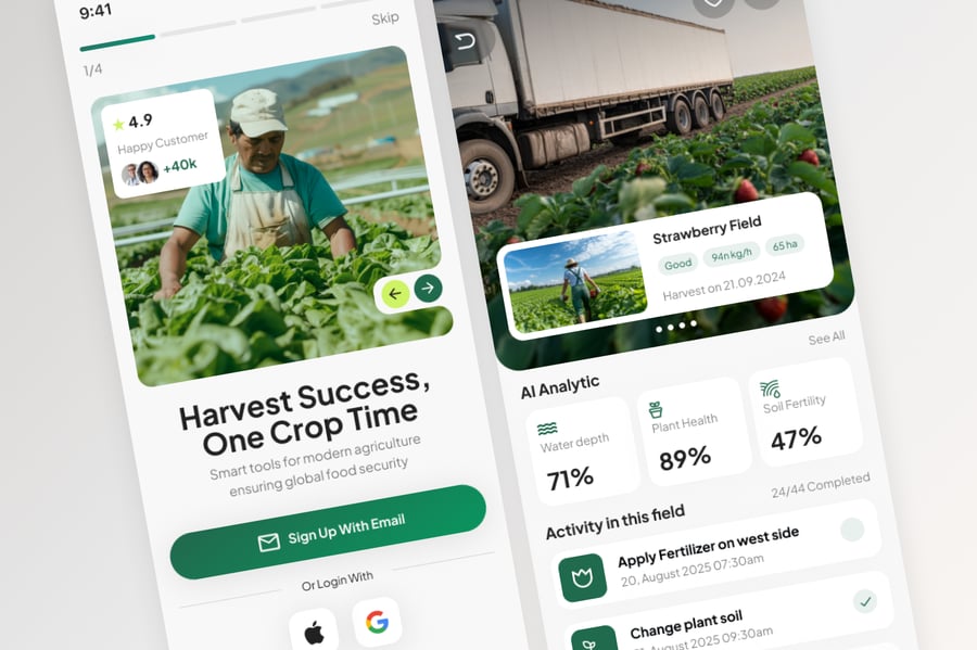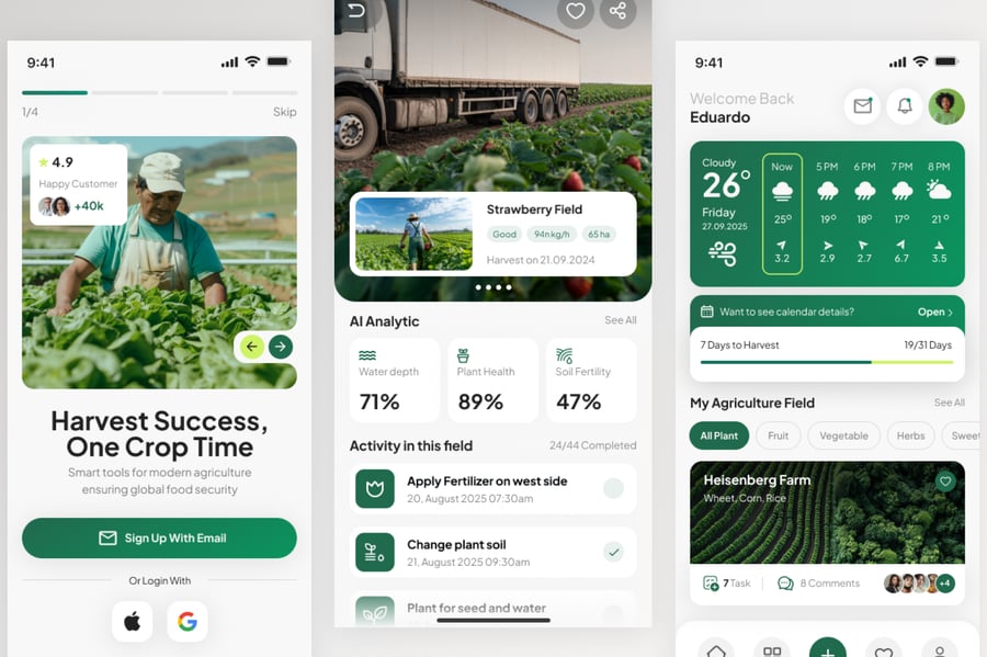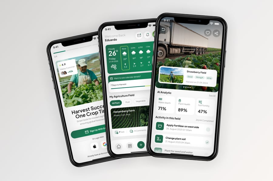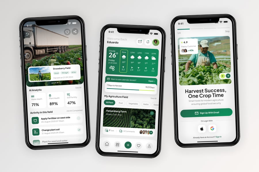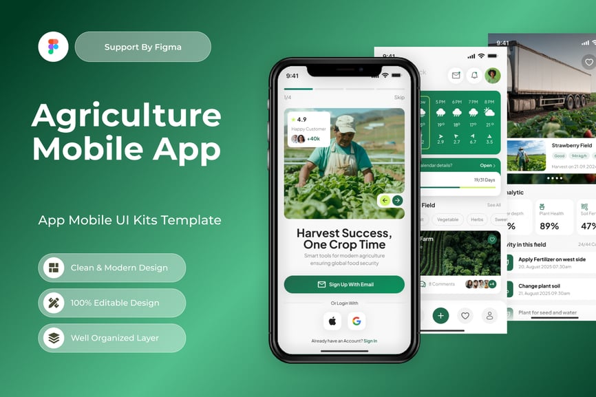 使用这款专业设计的模板,轻松打造极具影响力的农业移动应用。